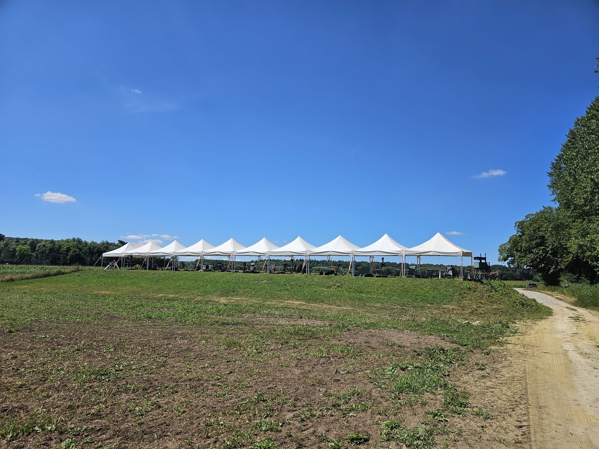 Ab etwa 700 Metern änderten sich die Bedingungen deutlich. Links des Standes öffnet sich der Wald, wodurch der Wind mehr Raum zur Beschleunigung hat. Entlang des Parcours hatten die Betreiber Windhosen installiert, die eindrucksvoll zeigten, wie stark und wechselhaft die Strömungen waren.