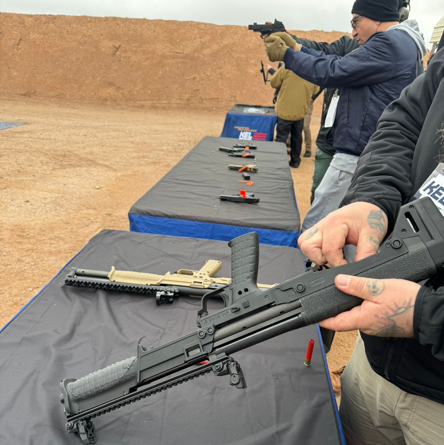 Unser erklärtes Ziel: So viele Waffen wie möglich zu schießen – mit besonderem Fokus auf Systeme, die in Deutschland entweder nicht zugelassen oder kaum verfügbar sind. Ein Highlight war dabei die Keltec KSG Shotgun im kompakten .410-Kaliber – ein Modell, das durch seine bullpup-Bauweise, das doppelläufige Röhrenmagazin und die kurze Gesamtlänge nicht nur ungewöhnlich aussieht, sondern sich auch ganz anders schießt als herkömmliche Flinten.